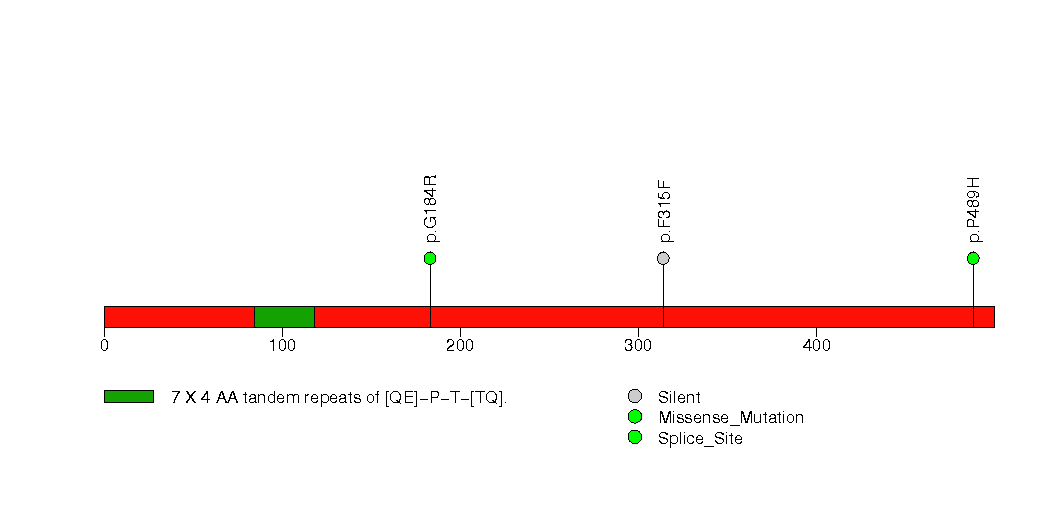 Figure S28. This figure depicts the distribution of mutations and mutation types across the TPTE significant gene.