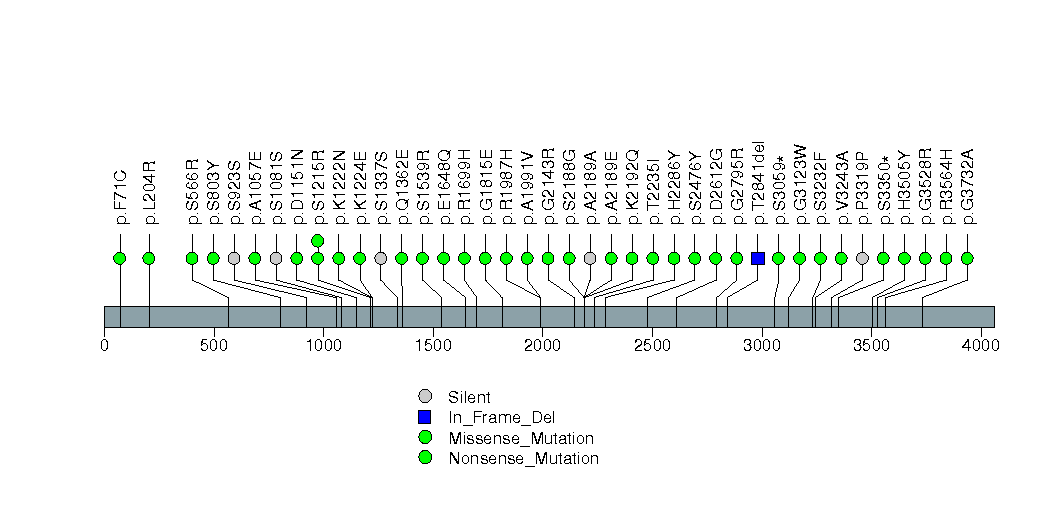 Figure S3. This figure depicts the distribution of mutations and mutation types across the IVL significant gene.