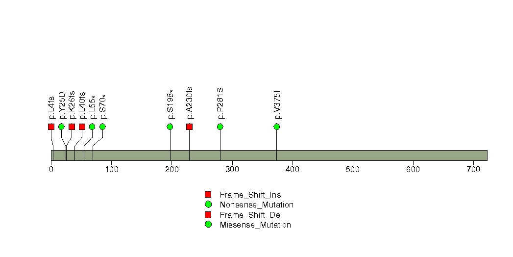 Figure S7. This figure depicts the distribution of mutations and mutation types across the NFE2L2 significant gene.
