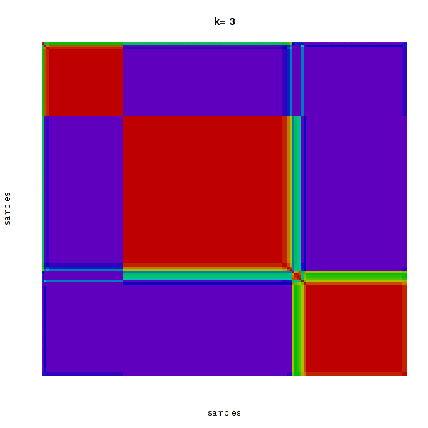 Figure 4.  Get High-res Image The consensus matrix after clustering shows 3 clusters with limited overlap between clusters.