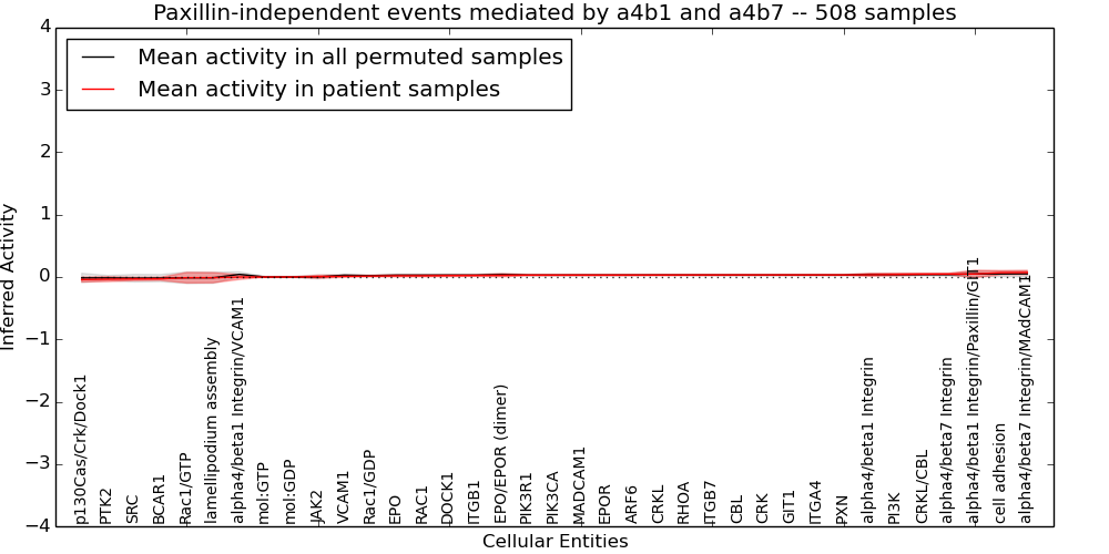 | Paxillin-dependent events mediated by a4b1 | 0.0833 | 44 | 1601 | 36 | -0.036 | 0.047 | 1000 | -1000 | -0.036 | -1000 |