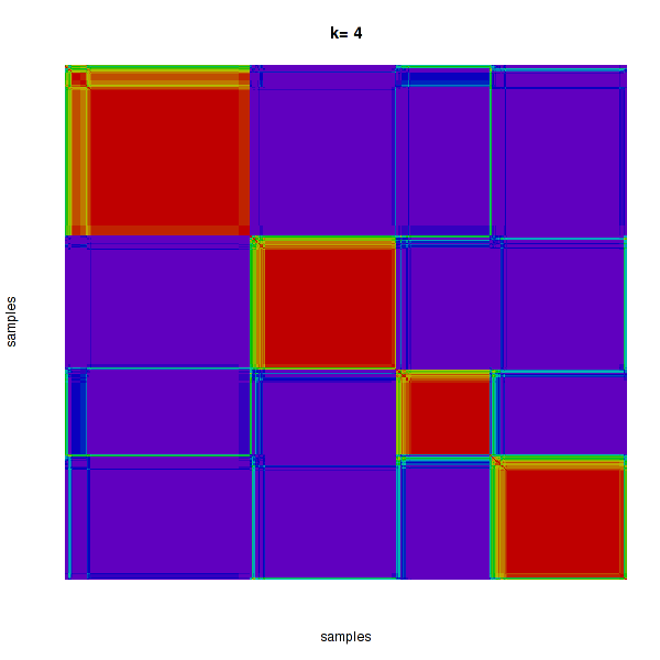 Figure 4. Get High-res Image The consensus matrix after clustering shows 4 clusters with limited overlap between clusters.