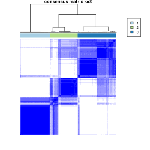 Figure 4. Get High-res Image The consensus matrix after clustering shows 3 clusters with limited overlap between clusters.