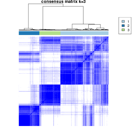 Figure 4. Get High-res Image The consensus matrix after clustering shows 3 clusters with limited overlap between clusters.