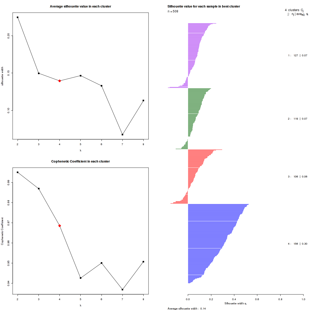 Table 1. Get Full Table List of samples with 4 subtypes and silhouette width.
