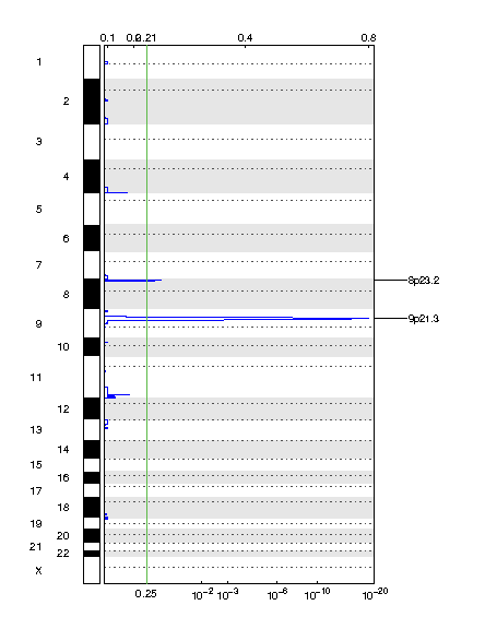 | 9p22.3 | 0.039788 | 0.039788 | chr9:10028278-16803132 | 18 |