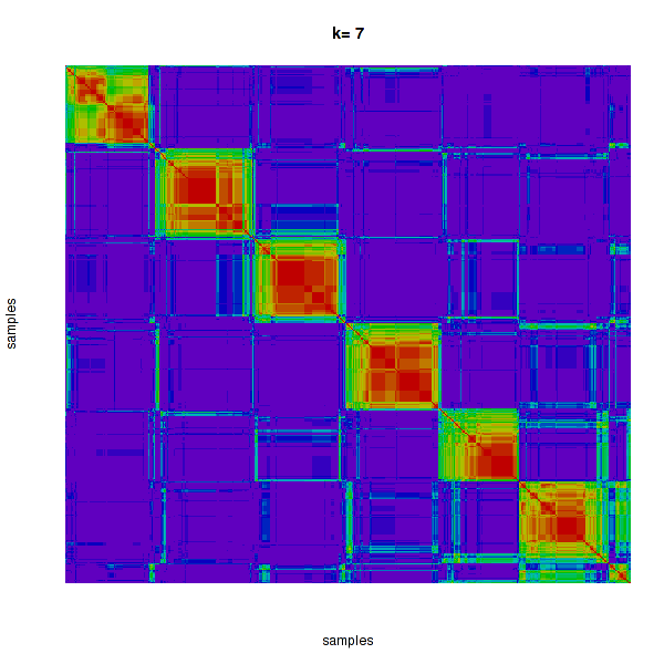 Figure 4. Get High-res Image The consensus matrix after clustering shows 7 clusters with limited overlap between clusters.