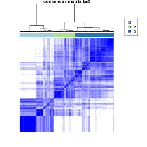 Figure 4. Get High-res Image The consensus matrix after clustering shows 3 clusters with limited overlap between clusters.