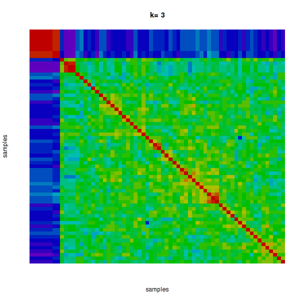 Figure 4. Get High-res Image The consensus matrix after clustering shows 3 clusters with limited overlap between clusters.