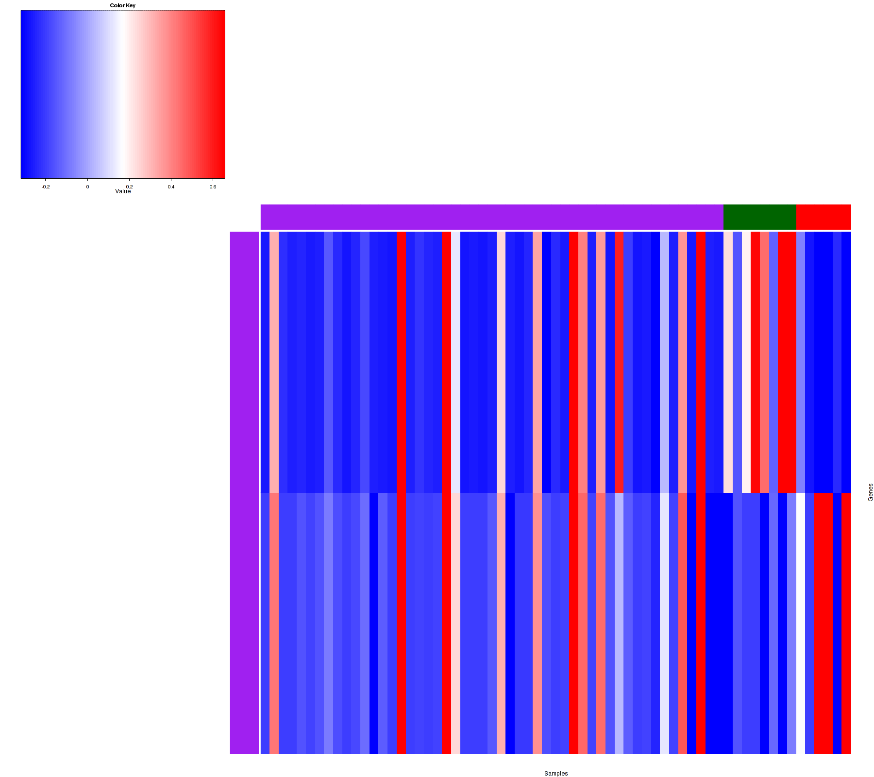 Figure 1. Get High-res Image Samples were separated into 3 clusters. Shown are 65 samples and 2 marker focal events. The color bar of the row indicates the marker focal events for the corresponding cluster.