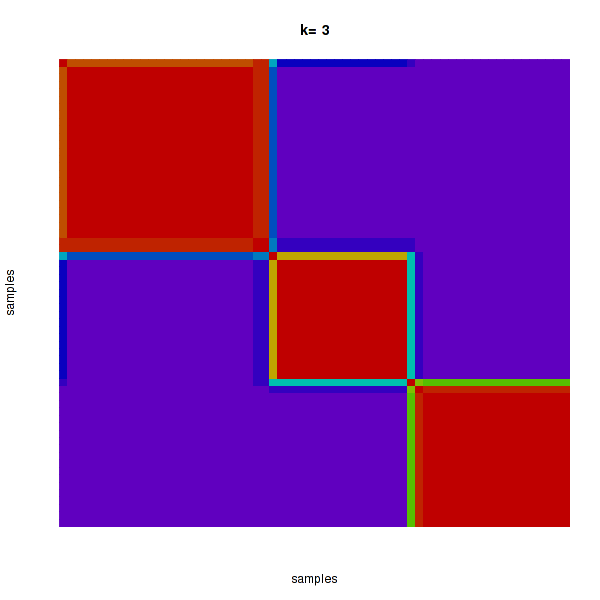 Figure 4. Get High-res Image The consensus matrix after clustering shows 3 clusters with limited overlap between clusters.