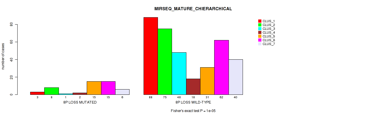 8p loss cnv correlated to 'CN_CNMF', 'METHLYATION_CNMF', 'MRNASEQ_CNMF', 'MRNASEQ_CHIERARCHICAL', 'MIRSEQ_CNMF', 'MIRSEQ_CHIERARCHICAL', 'MIRSEQ_MATURE_CNMF', and 'MIRSEQ_MATURE_CHIERARCHICAL'.
