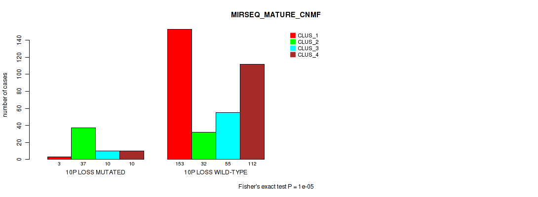 10p loss cnv correlated to 'CN_CNMF', 'METHLYATION_CNMF', 'RPPA_CHIERARCHICAL', 'MRNASEQ_CNMF', 'MRNASEQ_CHIERARCHICAL', 'MIRSEQ_CNMF', 'MIRSEQ_CHIERARCHICAL', 'MIRSEQ_MATURE_CNMF', and 'MIRSEQ_MATURE_CHIERARCHICAL'.