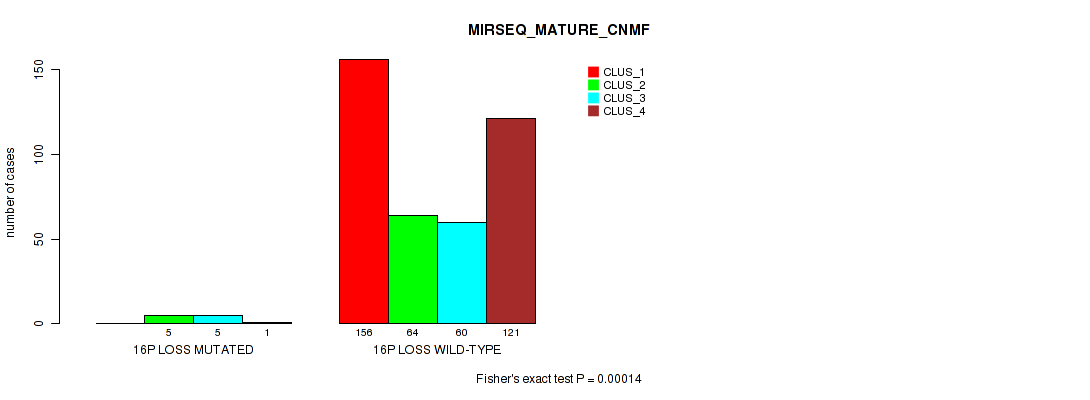 16p loss cnv correlated to 'METHLYATION_CNMF', 'RPPA_CHIERARCHICAL', 'MRNASEQ_CNMF', 'MRNASEQ_CHIERARCHICAL', 'MIRSEQ_CNMF', 'MIRSEQ_CHIERARCHICAL', 'MIRSEQ_MATURE_CNMF', and 'MIRSEQ_MATURE_CHIERARCHICAL'.
