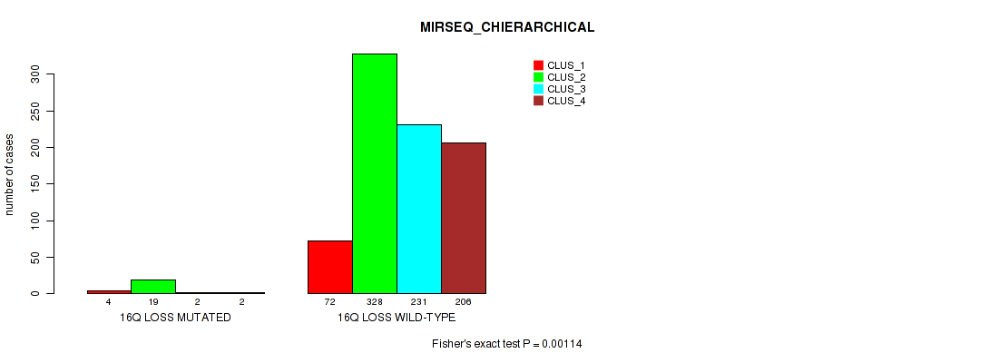 16q loss cnv correlated to 'CN_CNMF', 'METHLYATION_CNMF', 'MRNASEQ_CNMF', 'MRNASEQ_CHIERARCHICAL', 'MIRSEQ_CHIERARCHICAL', 'MIRSEQ_MATURE_CNMF', and 'MIRSEQ_MATURE_CHIERARCHICAL'.