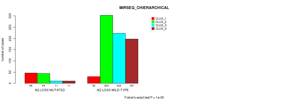 Figure S689. Get High-res Image Gene #82: 'xq loss' versus Molecular Subtype #10: 'MIRSEQ_CHIERARCHICAL'