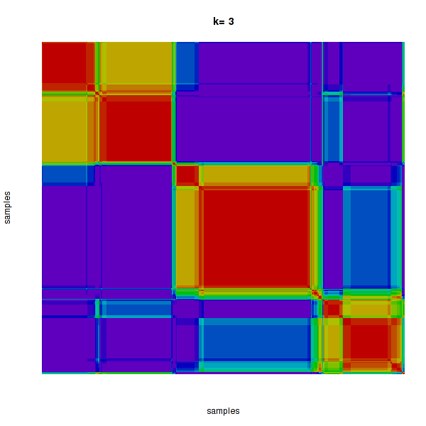 Figure 4. Get High-res Image The consensus matrix after clustering shows 3 clusters with limited overlap between clusters.