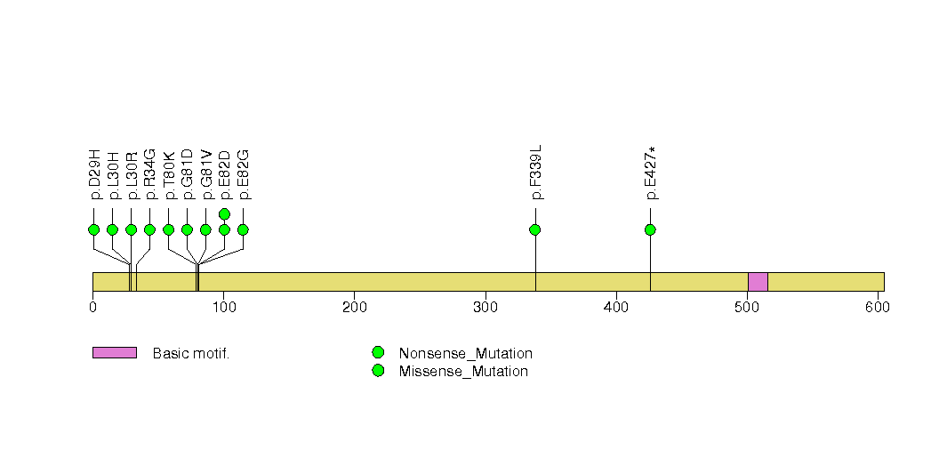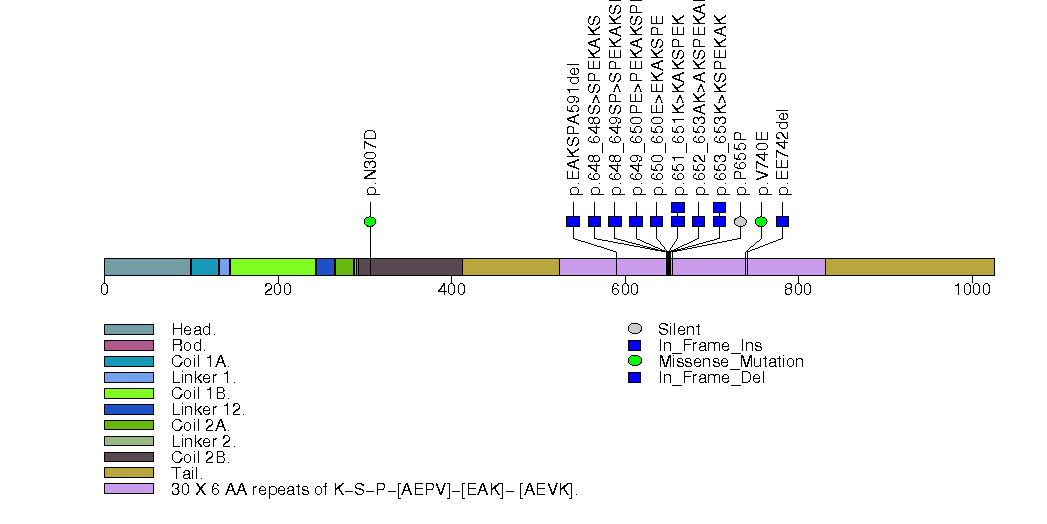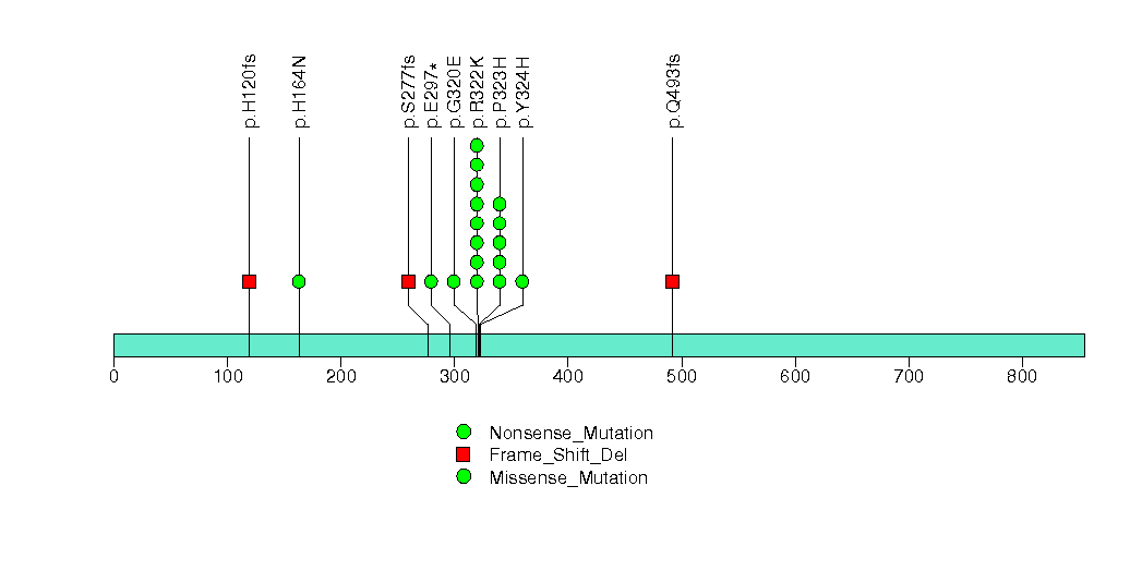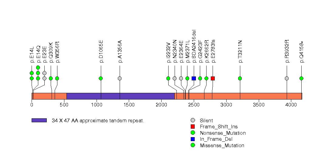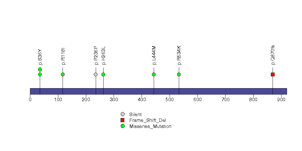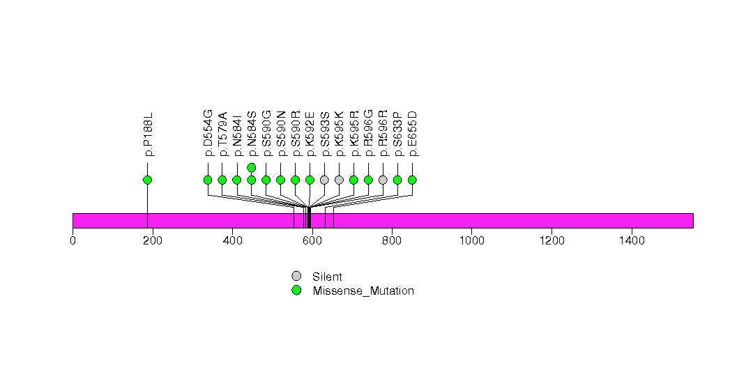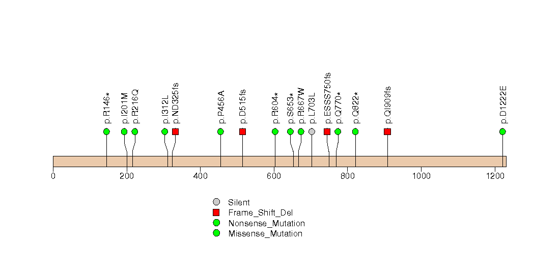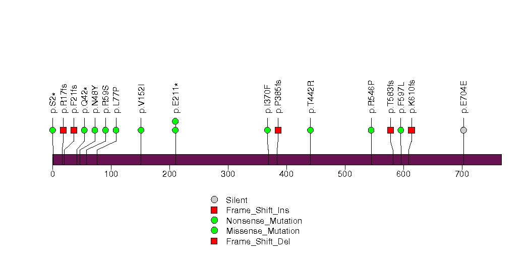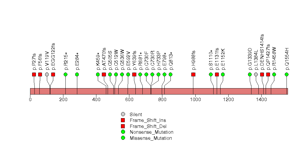 Figure S5. This figure depicts the distribution of mutations and mutation types across the NEFH significant gene.