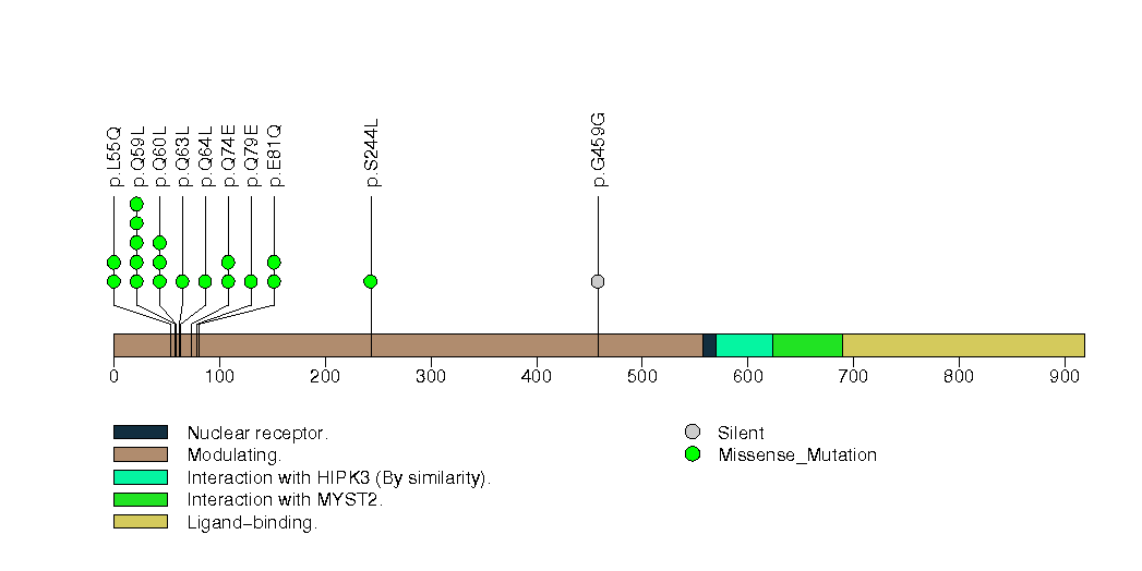 Figure S12. This figure depicts the distribution of mutations and mutation types across the AR significant gene.