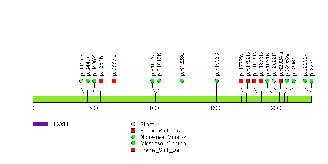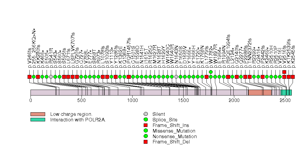 Figure S3. This figure depicts the distribution of mutations and mutation types across the SETD2 significant gene.