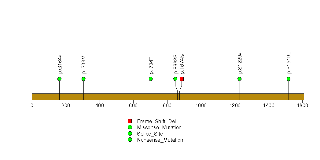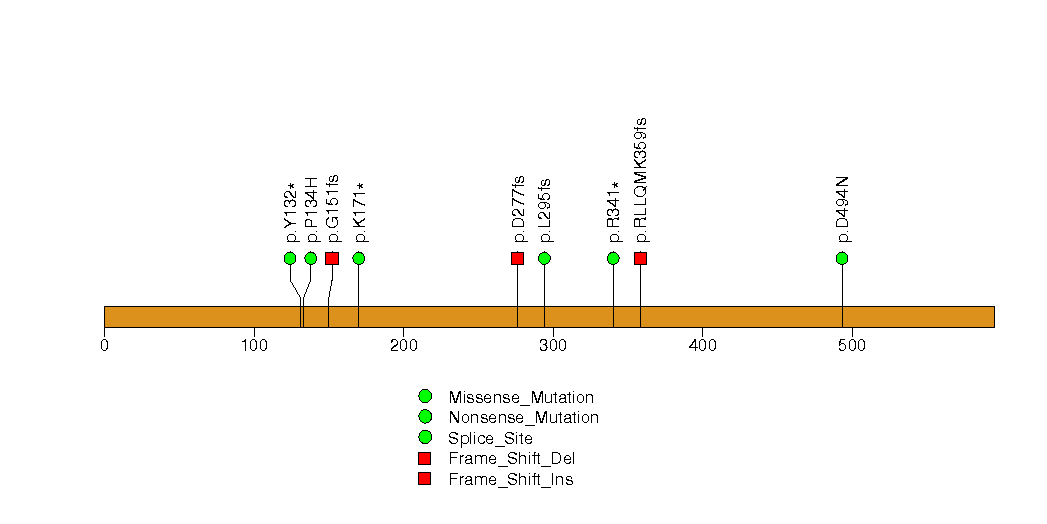 Figure S4. This figure depicts the distribution of mutations and mutation types across the PBRM1 significant gene.