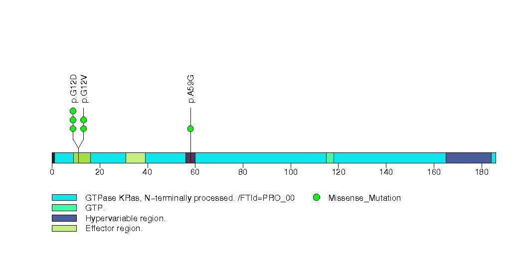 Figure S14. This figure depicts the distribution of mutations and mutation types across the KRAS significant gene.