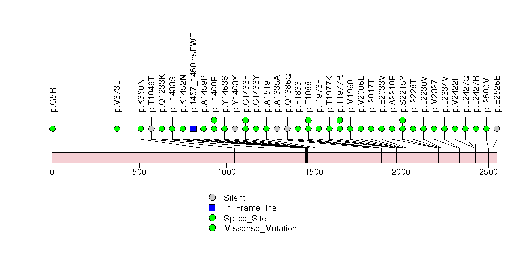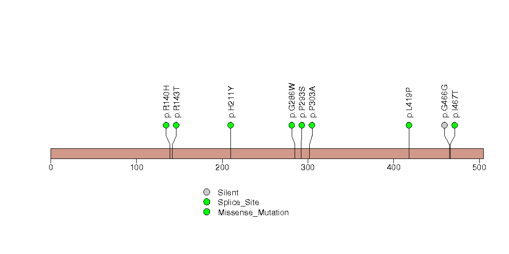Figure S8. This figure depicts the distribution of mutations and mutation types across the MET significant gene.