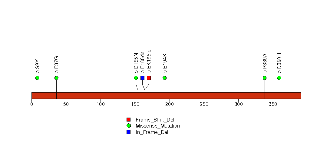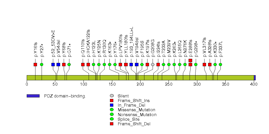 Figure S2. This figure depicts the distribution of mutations and mutation types across the PTEN significant gene.