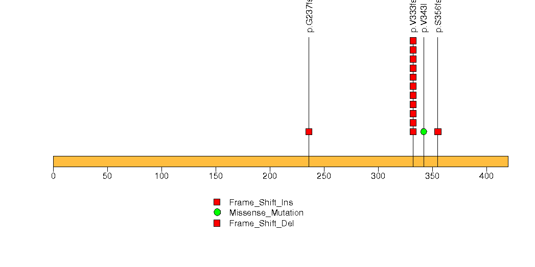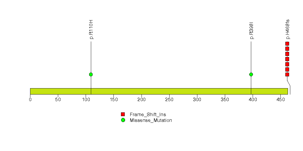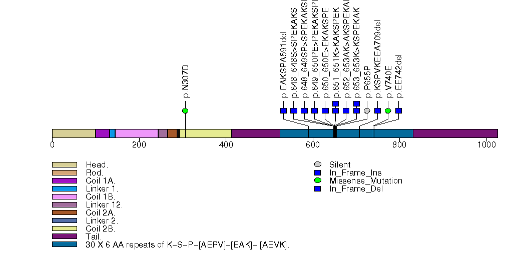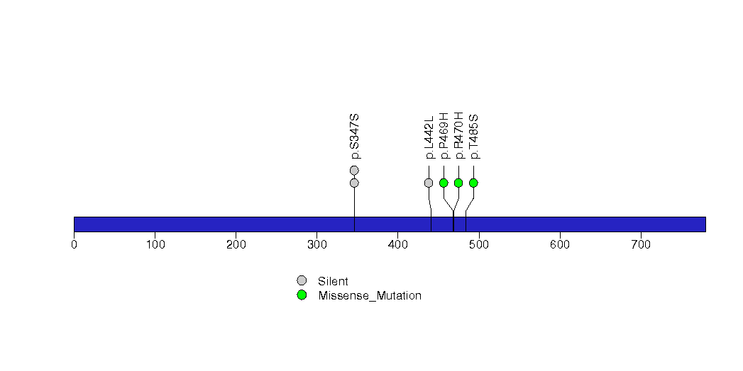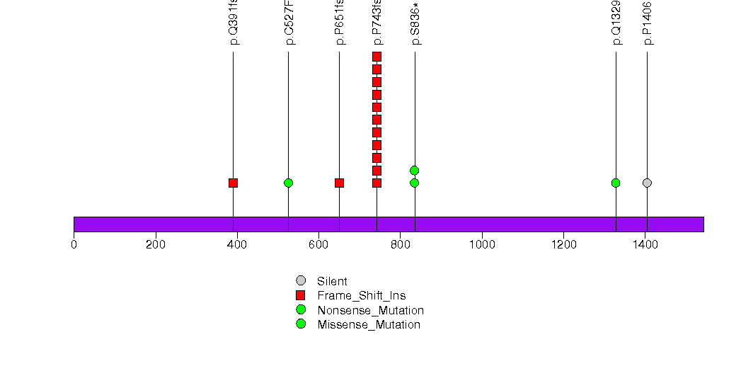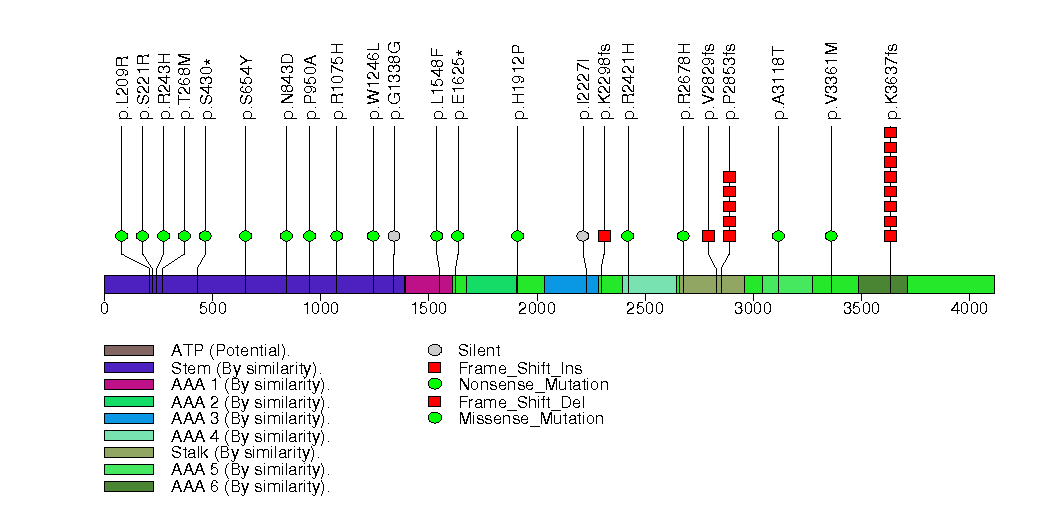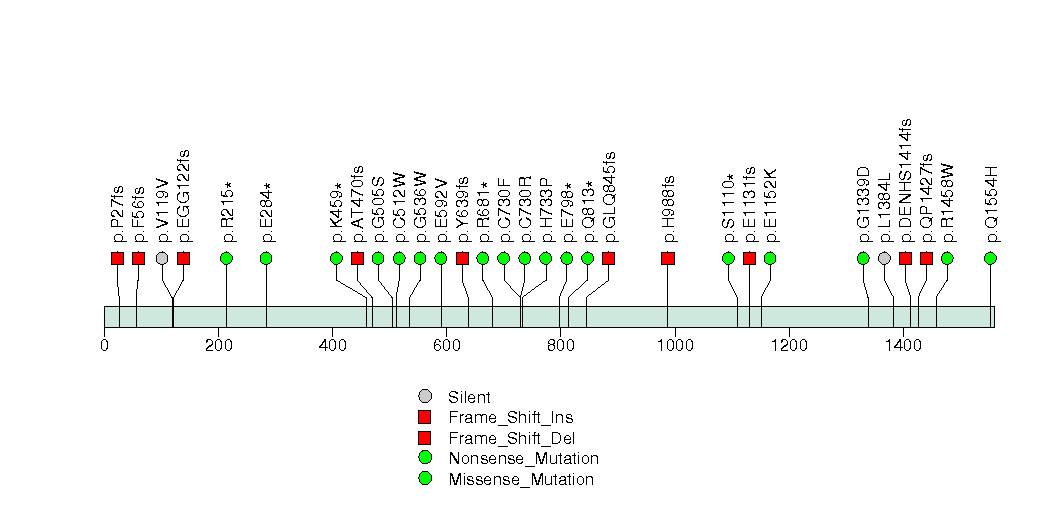Figure S17. This figure depicts the distribution of mutations and mutation types across the NEFH significant gene.