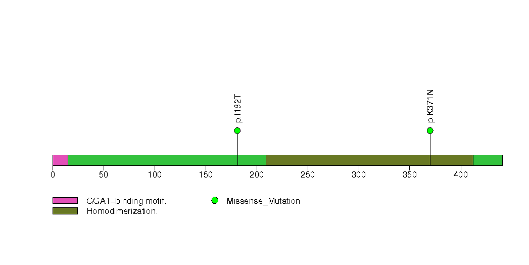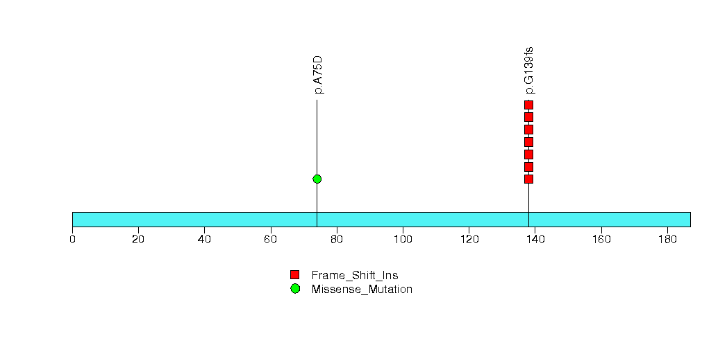 Figure S21. This figure depicts the distribution of mutations and mutation types across the ARPC2 significant gene.