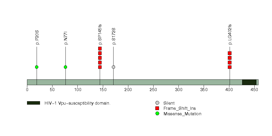 Figure S29. This figure depicts the distribution of mutations and mutation types across the CD4 significant gene.