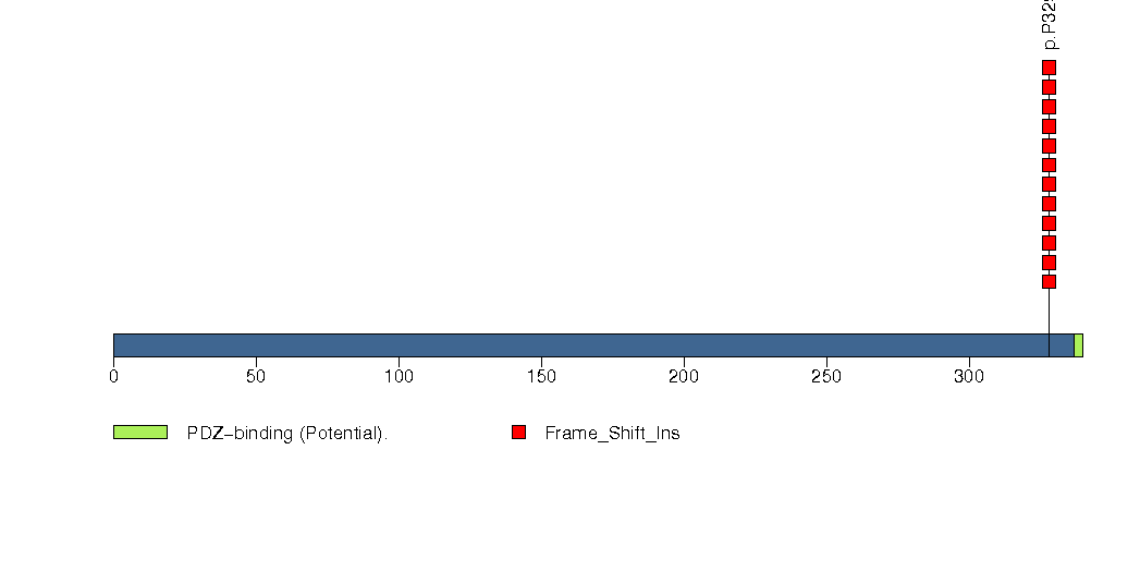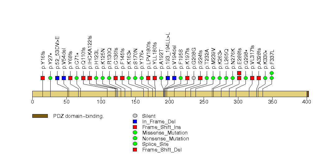 Figure S2. This figure depicts the distribution of mutations and mutation types across the PTEN significant gene.