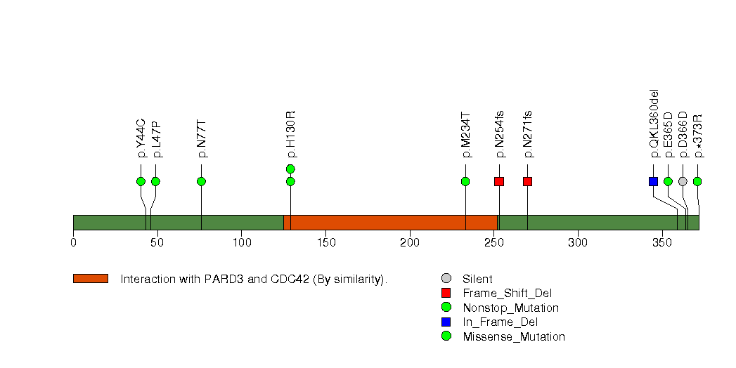 Figure S26. This figure depicts the distribution of mutations and mutation types across the PARD6B significant gene.