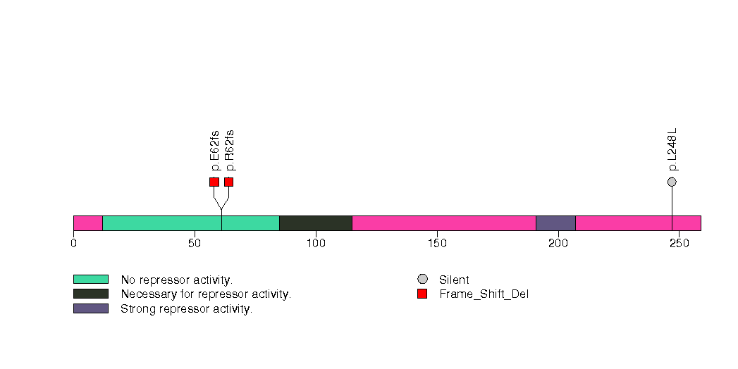 Figure S8. This figure depicts the distribution of mutations and mutation types across the KDM5C significant gene.
