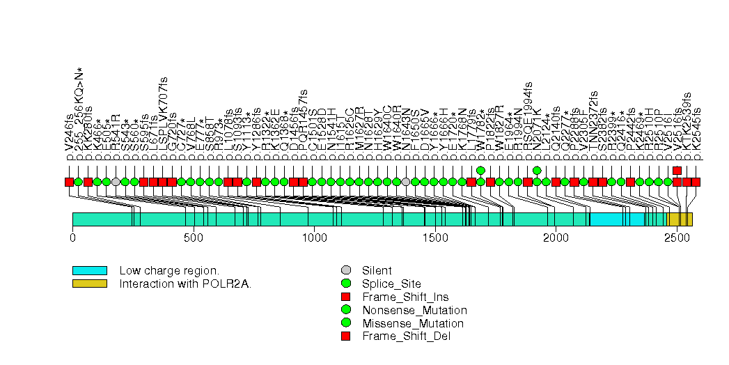 Figure S3. This figure depicts the distribution of mutations and mutation types across the SETD2 significant gene.