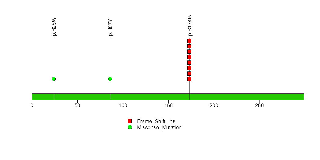 Figure S10. This figure depicts the distribution of mutations and mutation types across the NF2 significant gene.
