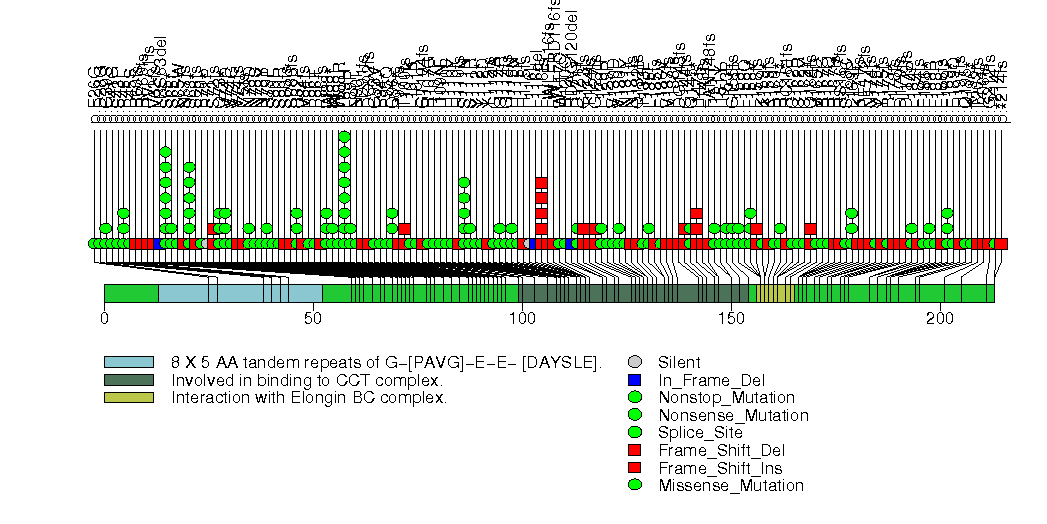 Figure S4. This figure depicts the distribution of mutations and mutation types across the VHL significant gene.