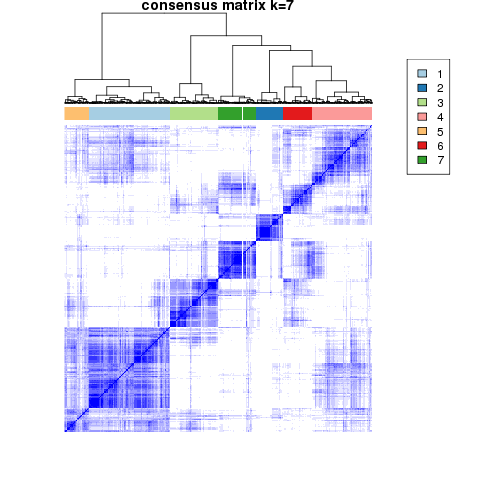 Figure 4. Get High-res Image The consensus matrix after clustering shows 7 clusters with limited overlap between clusters.