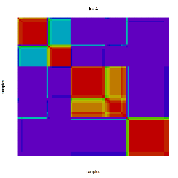 Figure 4. Get High-res Image The consensus matrix after clustering shows 4 clusters with limited overlap between clusters.