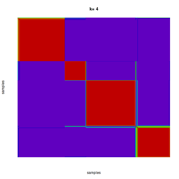 Figure 4. Get High-res Image The consensus matrix after clustering shows 4 clusters with limited overlap between clusters.