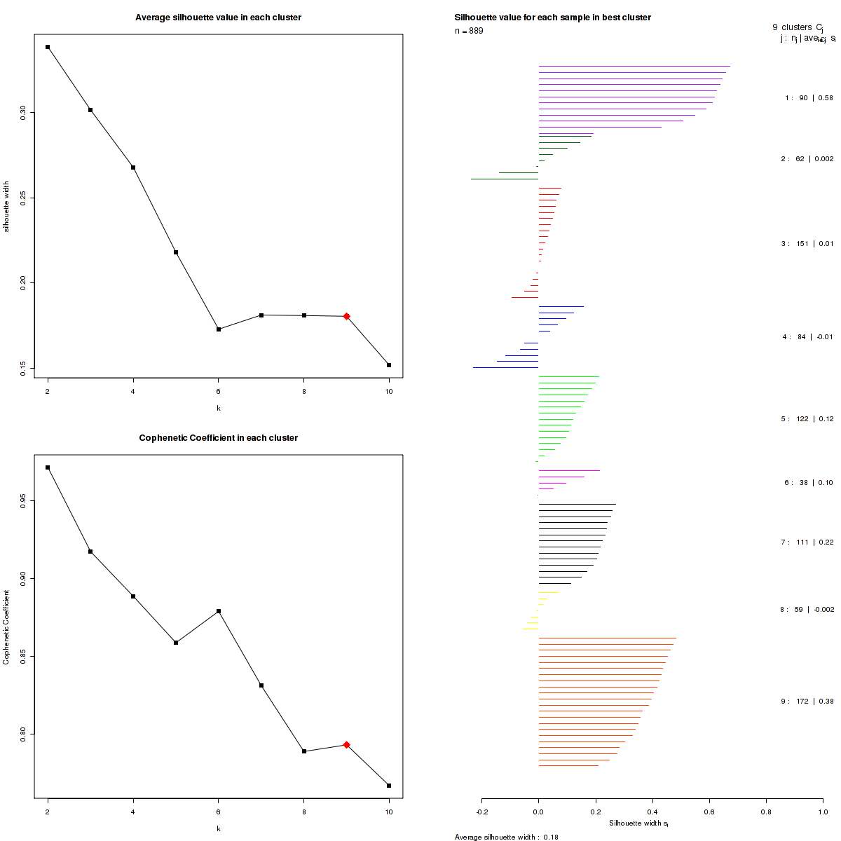 Table 1. Get Full Table List of samples with 9 subtypes and silhouette width.
