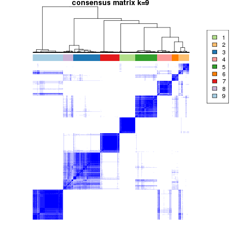 Figure 4. Get High-res Image The consensus matrix after clustering shows 9 clusters with limited overlap between clusters.