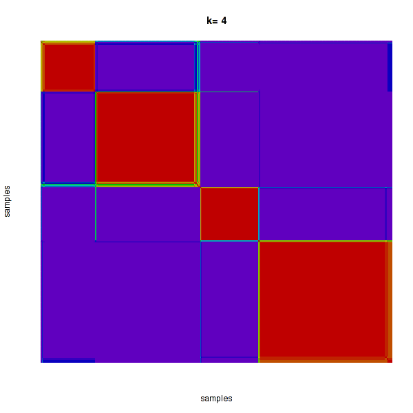 Figure 4. Get High-res Image The consensus matrix after clustering shows 4 clusters with limited overlap between clusters.