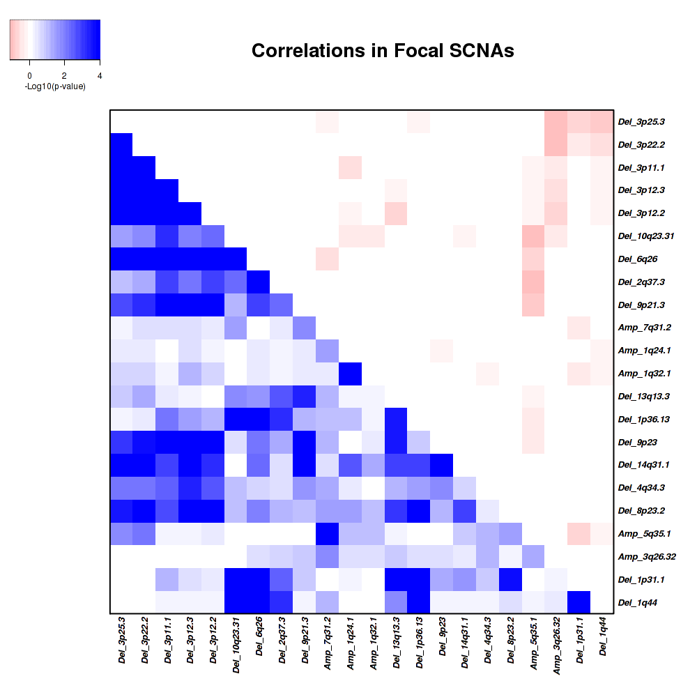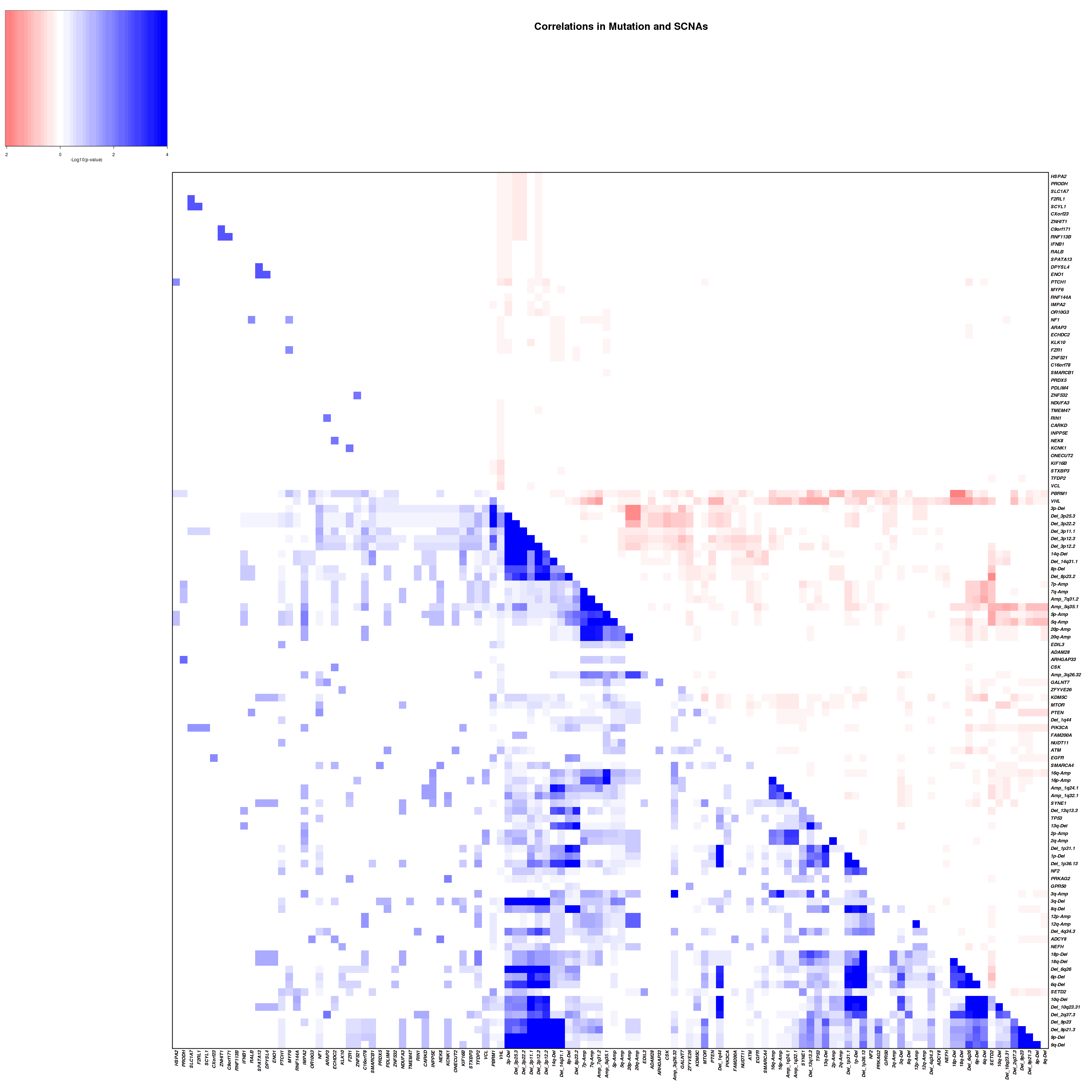 Figure 4. Get High-res Image Co-occurring and mutually-exclusive pairs for all copy number and mutation events. Blue means two events are co-occurring and red means two events are mutually-exclusive.
