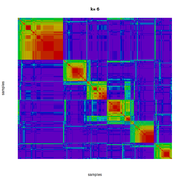 Figure 4. Get High-res Image The consensus matrix after clustering shows 6 clusters with limited overlap between clusters.