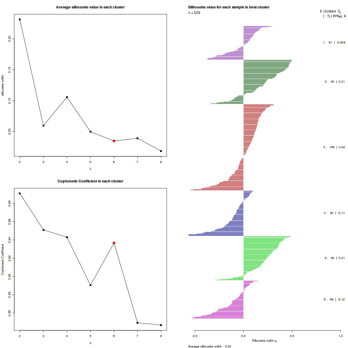 Table 1. Get Full Table List of samples with 6 subtypes and silhouette width.
