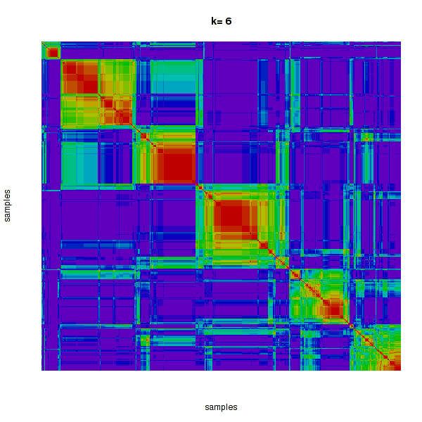 Figure 4. Get High-res Image The consensus matrix after clustering shows 6 clusters with limited overlap between clusters.