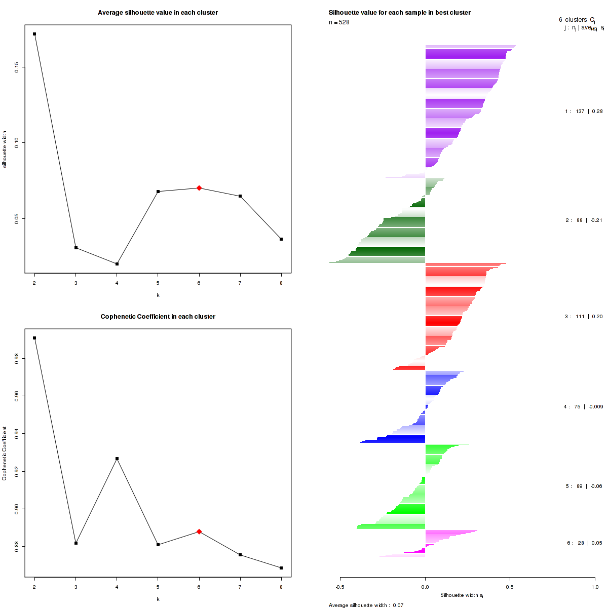 Table 1. Get Full Table List of samples with 6 subtypes and silhouette width.