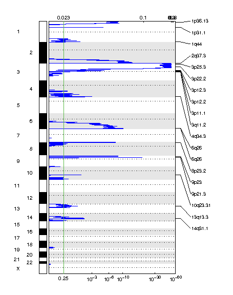 | 16p | 559 | 0.21 | 6.89 | 1.4e-11 | 0.02 | -5.71 | 1 |