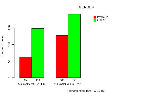 5q gain cnv correlated to 'YEARS_TO_BIRTH' and 'GENDER'.
